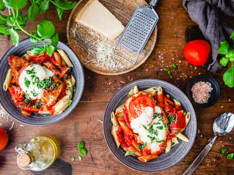 Rapea parmesaanikana tomaattikastikkeessa tarjoillaan pastan kera. Kuulostaako herkulliselta?