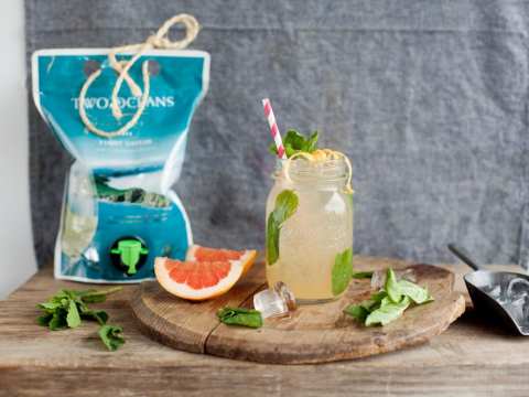 Katso reseptiSuositusta Two Oceans -valkoviinistä valmistat matala-alkoholisen drinkin, jossa raikkautta tuovat myös kurkku ja lime.