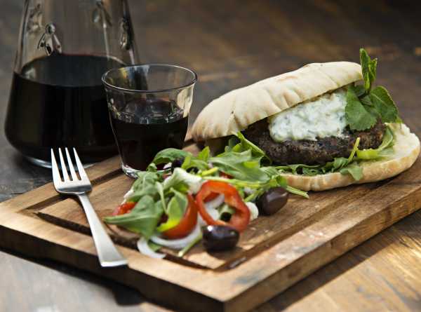 Rento kreikkalainen ruoka toimii parhaiten mehevän punaviinin kanssa.
