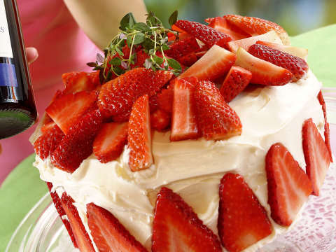 Katso reseptiHerkullinen mansikka-mascarponekakku kostutetaan Fresita-kuohuviinillä.