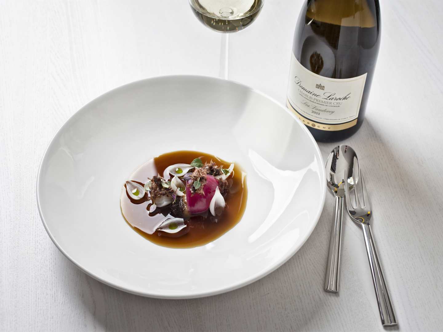 Yhdistä runsas Laroche-valkoviini ylikypsän härän seuraan.