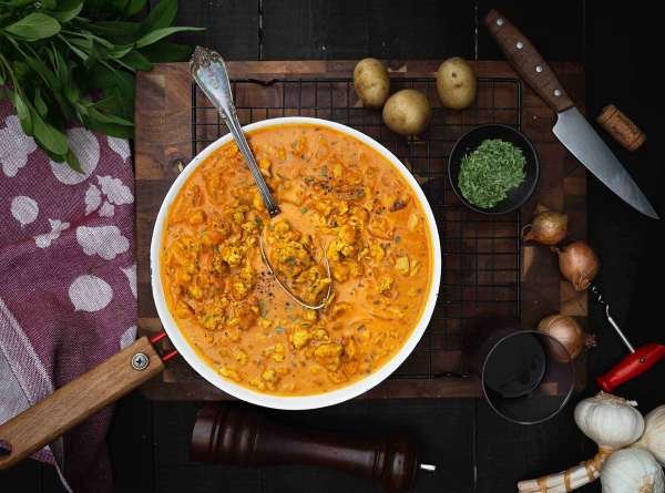 Tarjoile riisin tai keitettyjen perunoiden kanssa.