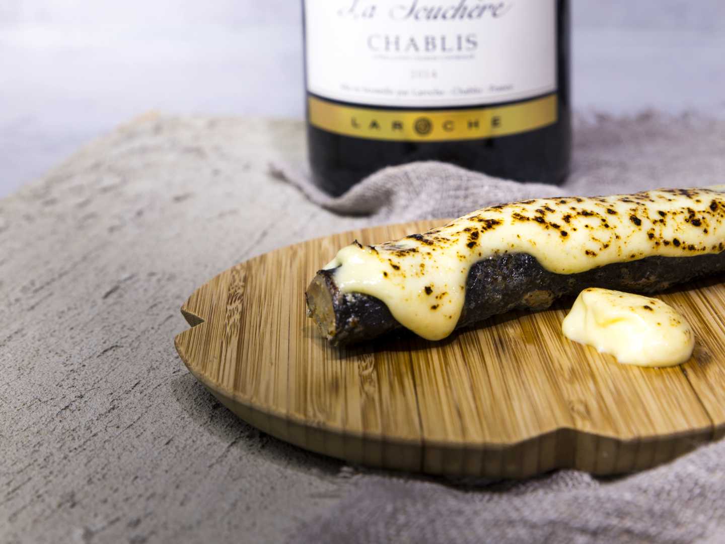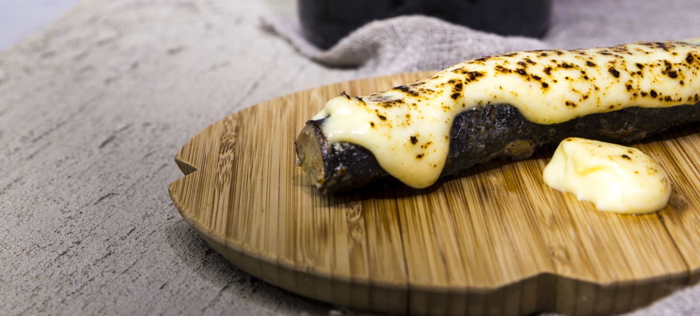 Lisää kastike kypsien mustajuurin päälle. Jos käytössäsi on kaasupoltin, käytä sitä antamaan väriä ja makua. Voit myös gratinoina kuumassa uunissa lyhyen aikaa grillivastuksella.